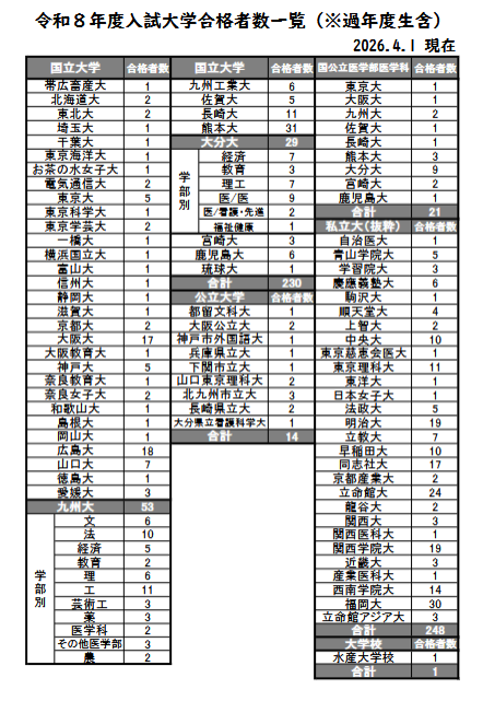 今週、大分上野丘高校の大学合格実績が公表されました。